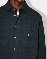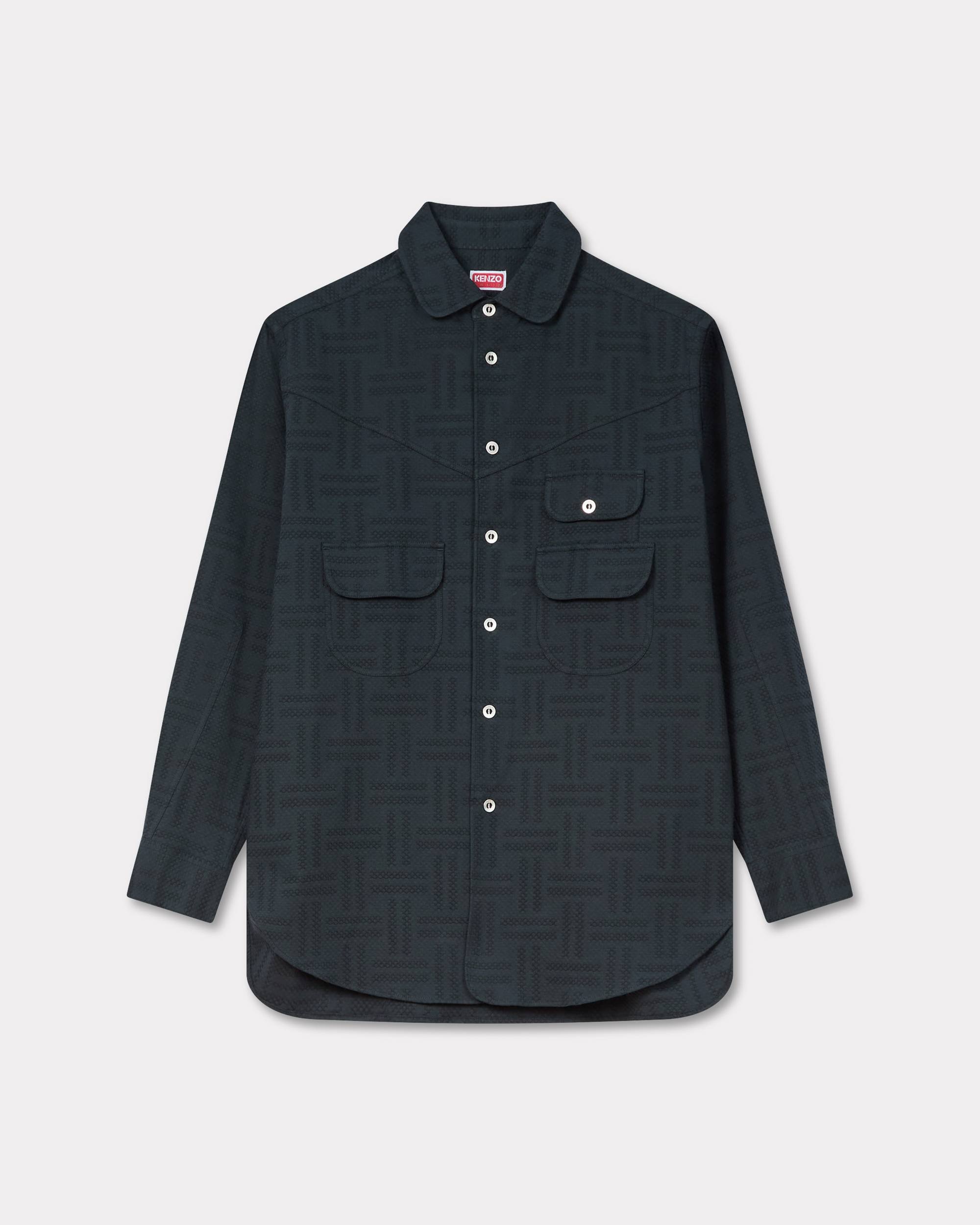 'KENZO Weave' workwear overshirt. Jacquard textured cotton. 3 front flap pockets. Club collar. Product Reference: FF65CH5369JF.99 SIZE & FIT The model is 185 cm tall and is wearing size M. Back length at 82 cm. Oversize fit. COMPOSITION & CARE Made in Tunisia 98% cotton, 2% elastane Do not bleach Mild professional dry-cleaning in: hydrocarbons Do not tumble dry Do not wash Do not wet-clean