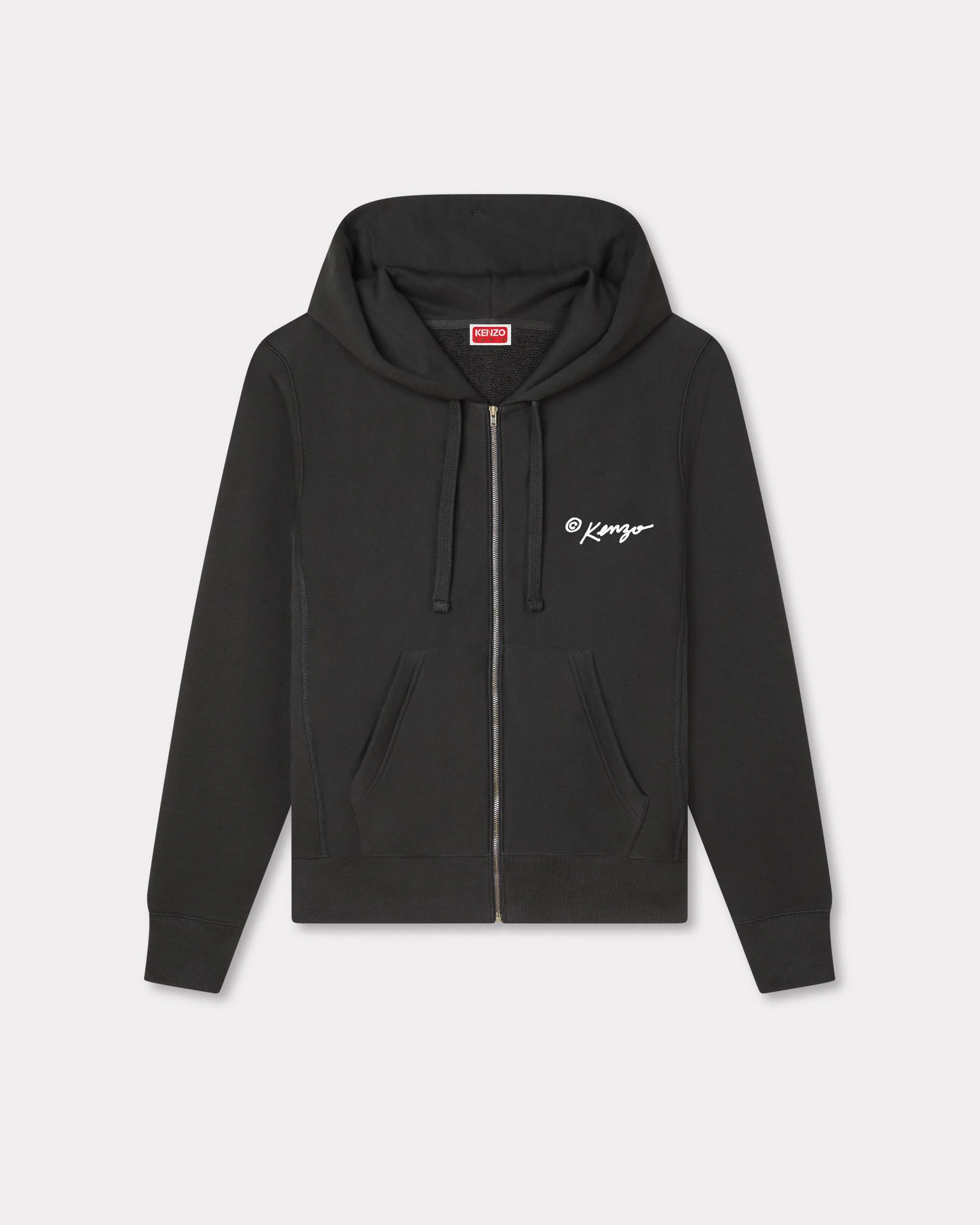 'KENZO Wild Tiger' zip up hoodie. New Light Soft Unbrushed Molleton with transeasonal weight. Two-way zip. Kangaroo pocket. Printed back placed ‘Wild Tiger’. Seasonal branding printed on the chest. Product Reference: FG52HO2094MJ.99J SIZE & FIT The model is 175 cm tall and is wearing size S. Classic fit. COMPOSITION & CARE Made in Portugal 100% cotton Do not bleach Do not dry-clean Iron at low temperature Flat drying in the shade Do not tumble dry 30°C very mild fine wash Very mild professional wet-cleaning
