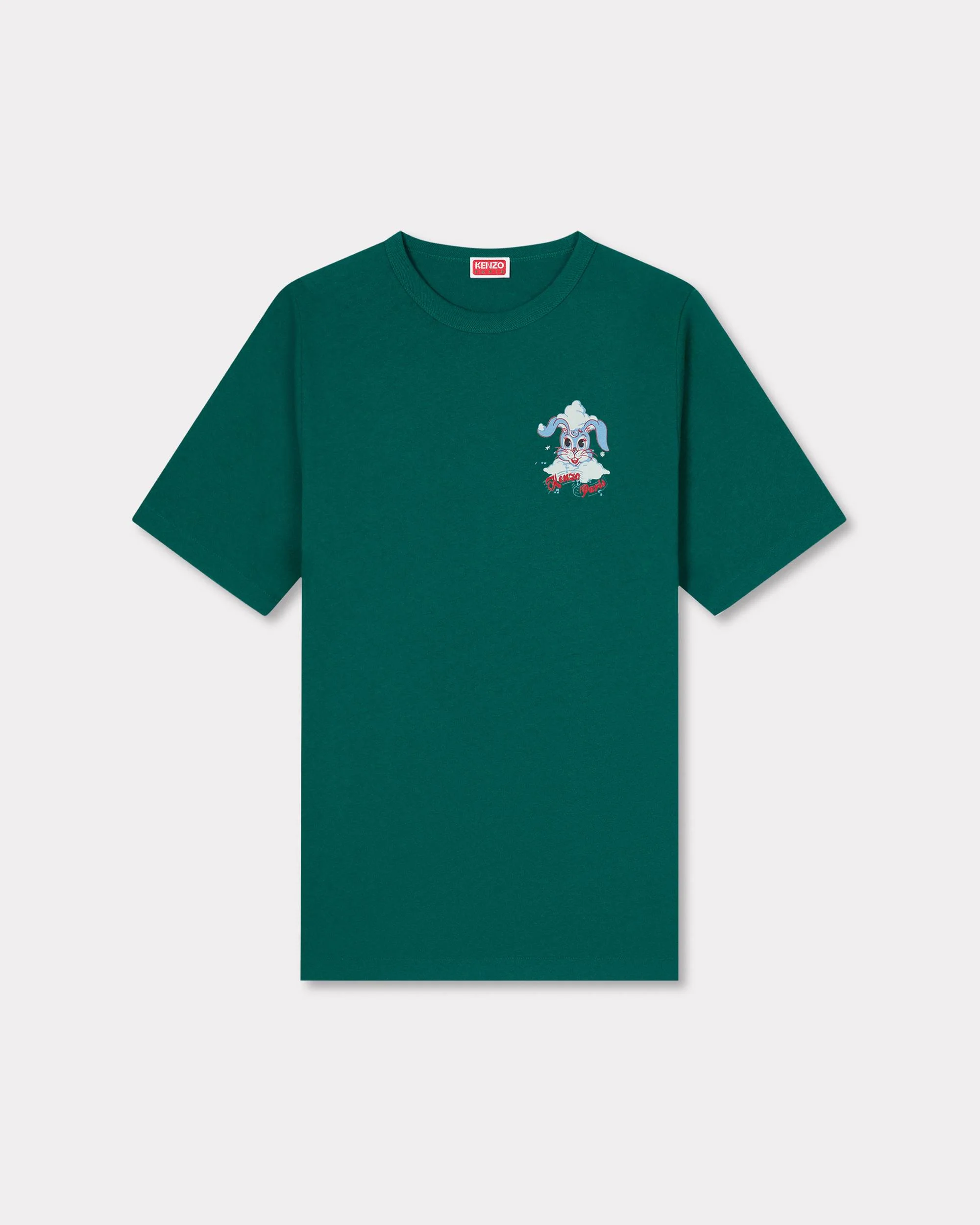 Made from jersey, this oversized t-shirt captures the playful spirit of the KENZO Winter Holidays capsule collection, with motifs on the chest and back featuring K@li the rabbit playing in the snow. The piece also features a redesigned 'KENZO Paris' logo featuring musical notes reminiscent of American greeting cards from the 1950s. 'KENZO Winter Holidays' T-shirt. Single Jersey for a comfortable feel & transeasonal weight. Printed graphic on the chest. Product Reference: FG55TS2024SK.55 SIZE & FIT The model is 185 cm tall and is wearing size M. Classic fit. COMPOSITION & CARE Made in Portugal 100% cotton Do not bleach Do not dry-clean Iron at low temperature Line drying in the shade Do not tumble dry 30°C mild fine wash Mild professional wet-cleaning