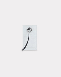 'Kenzo x Futura 2000' iPhone case 'Kenzo Paper' in leather. 'Kenzo x Futura 2000' collection. Detachable hook with leather lace. Shiny nickel. 'Kenzo Paris' on the front. Product Reference: FF62PM108L07.01.TU SIZE & FIT Dimensions: 10.5 x 18.5 x 0.3 cm. COMPOSITION & CARE Made in China 100% goat leather Do not wash