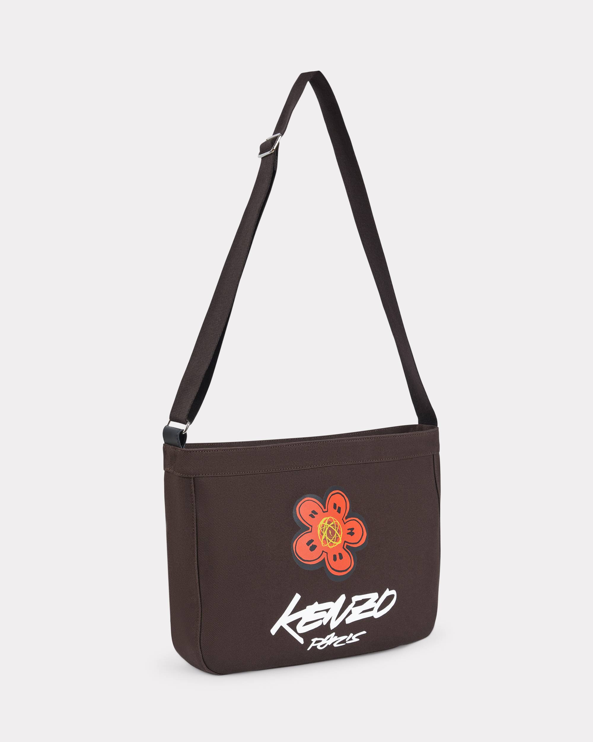 'Kenzo x Futura 2000' large crossbody bag 'Kenzo Utility' in canvas. 'Kenzo x Futura 2000' collection. Adjustable strap. Zip fastener. 1 inside flat pocket. Shiny nickel. Printed 'Boke Flower' underlined with 'Kenzo Paris' on the front. Printed '18 rue Vivienne Paris' on the back. Product Reference: FF68SA919F36.91.TU SIZE & FIT Dimensions: 35 x 27.5 x 8 cm. Adjustable strap. Strap drop length: max 57 cm. COMPOSITION & CARE Made in China 100% cotton Do not bleach