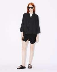 This lightweight kimono jacket pays homage to the origins of the brand's founder, Kenzo Takada. Inspired by the traditional Japanese kimono, it features tie straps at the side. This jacket is one of the stand-out designs of the VESTIAIRE DE NIGO FOR KENZO collection. It is easy to wear with anything, and we particularly like pairing it with the matching skirt for the full look, or mixing it up with another design from the collection. Kimono. Long sleeves. V neck. KENZO Paris label on the back. Kimono tie fastening. Product Reference: FE52VE2539FD.99 SIZE & FIT Length at back: 62 cm. The model is 175 cm tall and wears a size S. COMPOSITION & CARE Made in Portugal 89% viscose, 11% polyamide Do not bleach Mild professional dry-cleaning in: hydrocarbons Iron at low temperature Line drying in the shade Do not tumble dry Do not wash Do not wet-clean