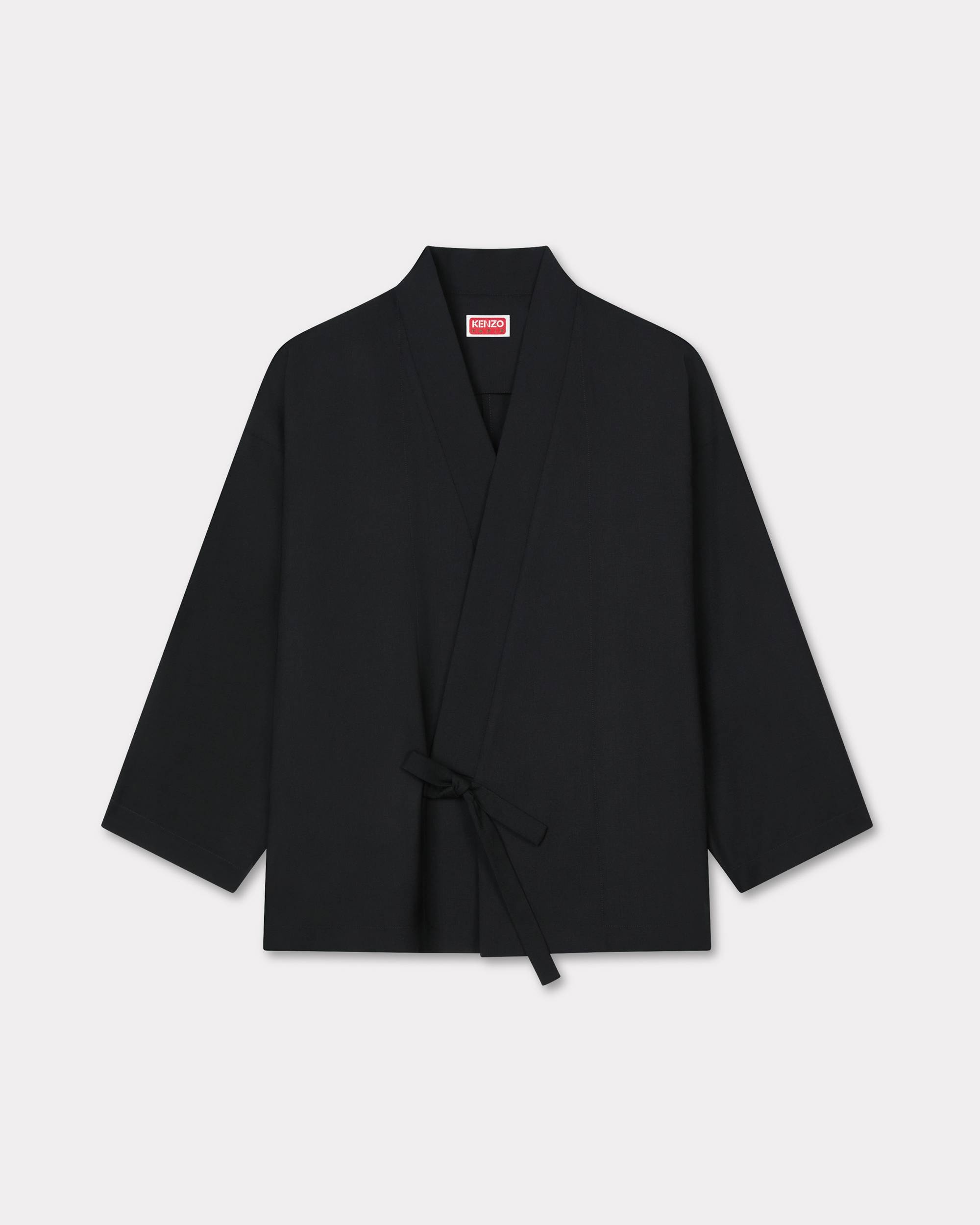 Kimono jacket. Virgin wool. Strap kimono closure. Tonal 'KENZO Paris' label at back. Product Reference: FF62VE2749RA.99 SIZE & FIT The model is 175 cm tall and is wearing size S. Back length at 62 cm. COMPOSITION & CARE Made in Romania 100% virgin wool Iron at low temperature