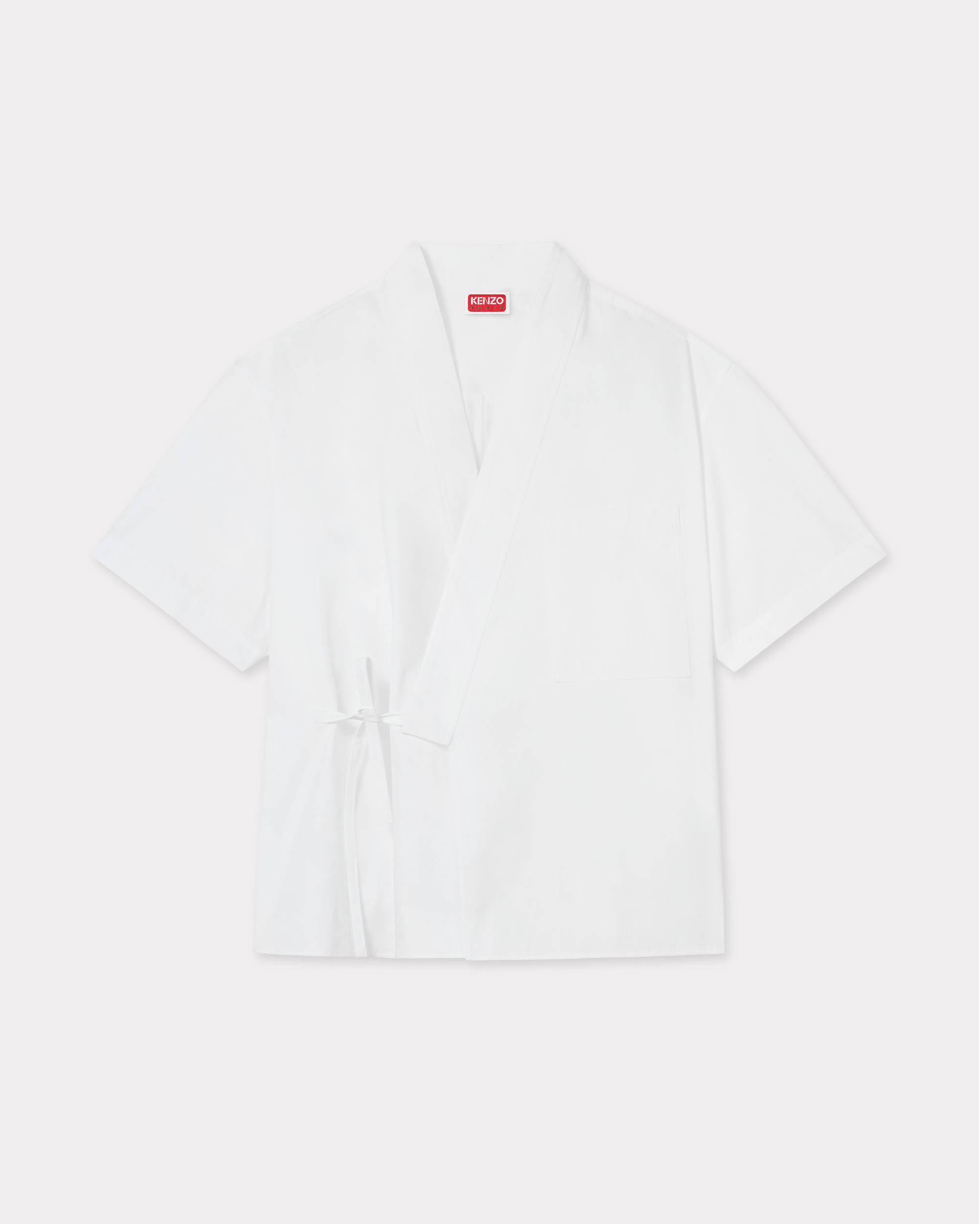 Kimono short sleeve shirt. Cotton poplin. Chest pocket. Attach strap to lapel flap. Tone on tone 'KENZO Paris' on the back neck. Embroidery. Product Reference: FF65CH1319L1.01 SIZE & FIT The male model is 185 cm tall and is wearing size M. Back length at 70 cm. Kimono fit. COMPOSITION & CARE Made in Tunisia 100% cotton Do not bleach Do not tumble dry Very mild professional wet-cleaning