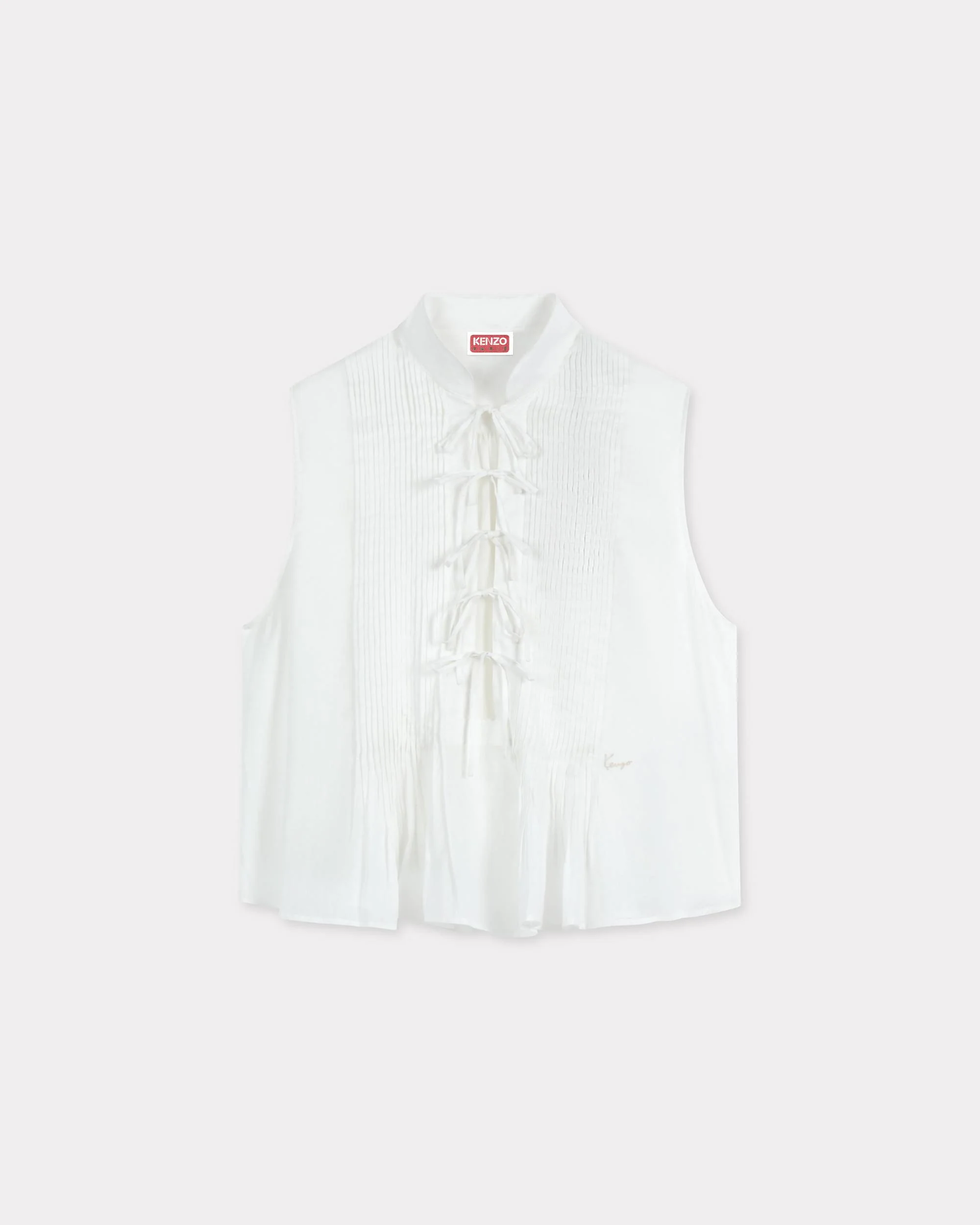 Light sleeveless top. Very light cotton. Officer collar. Tonal archive signature embroidered at front. Product Reference: FG52TO2399FE.03 SIZE & FIT The model is 175 cm tall and is wearing size 36. Back length 54 cm. The fit of this product is loose. We recommend choosing one size smaller than your usual size. COMPOSITION & CARE Made in Madagascar 100% cotton Do not bleach Mild professional dry-cleaning in: hydrocarbons Iron at low temperature Line drying in the shade Do not tumble dry Do not wash Do not wet-clean