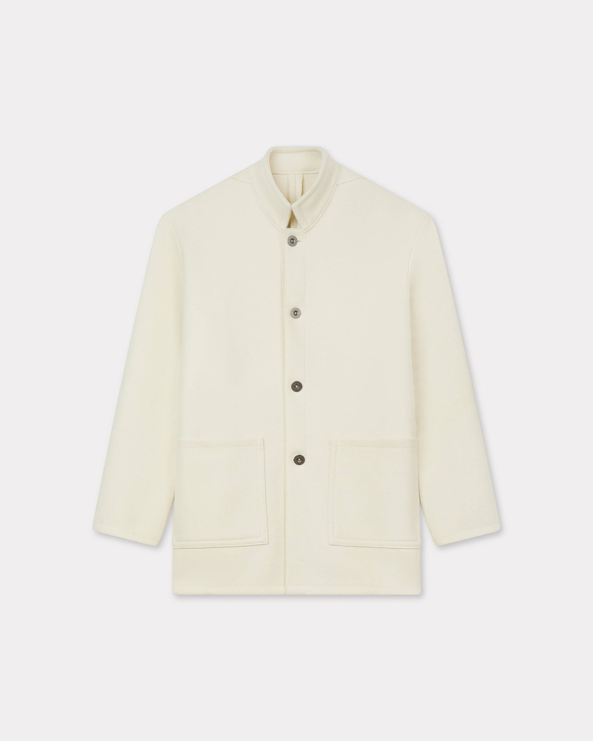 Officer coat. Virgin wool. Stand collar and two patch pockets at front. Metallic buttons engraved 'KENZO Paris'. Metallic KENZO Archive signature at back. Product Reference: FF62MA2409RH.03 SIZE & FIT The model is 175 cm tall and is wearing size S. COMPOSITION & CARE Made in Bulgaria 100% virgin wool Mild professional dry-cleaning in: hydrocarbons Drip line drying in the shade Do not wet-clean