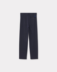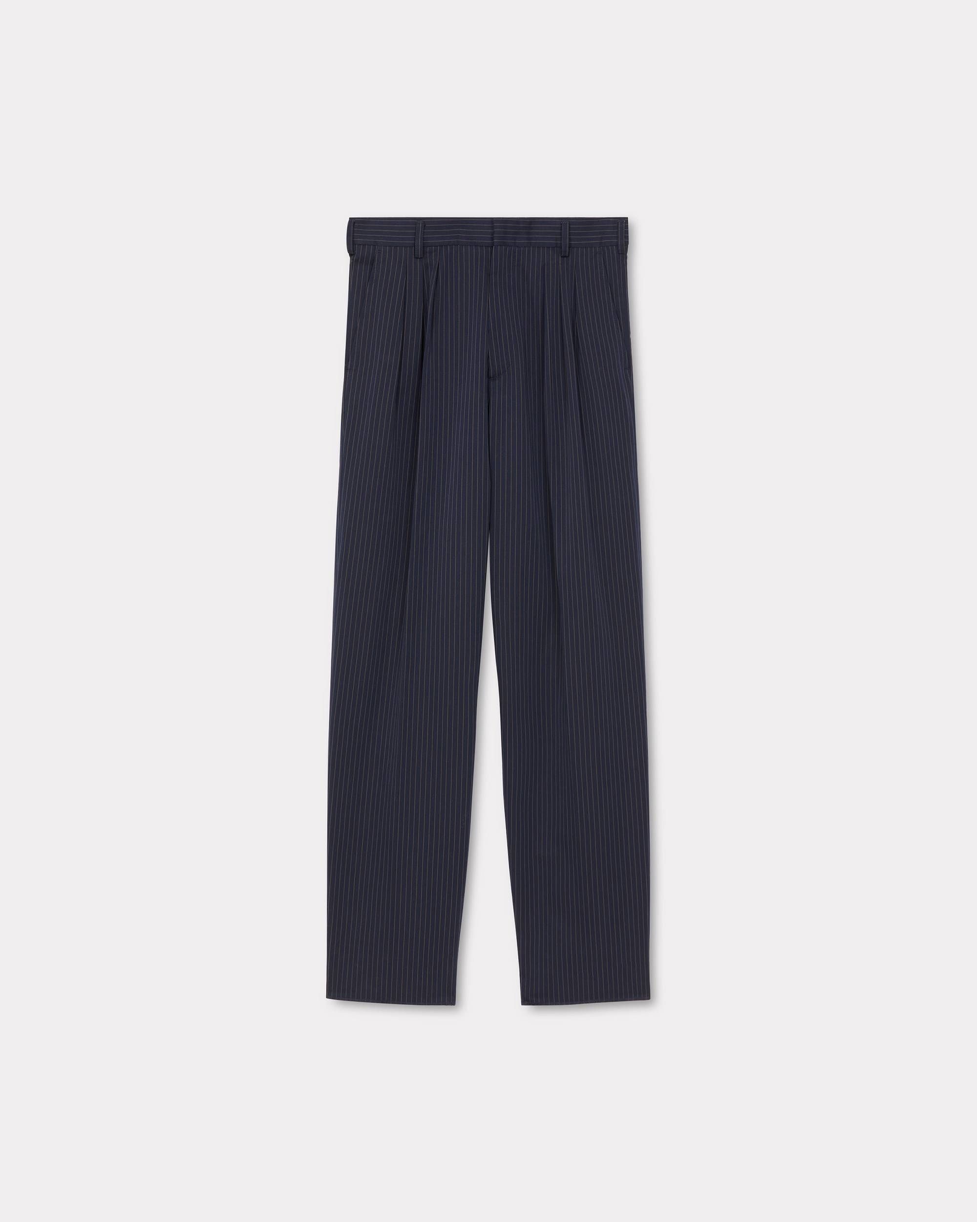 These authentic pleated suit trousers boast a retro style enhanced by their striped fabric. A KENZO Paris label subtly decorates the back pocket. This garment is made to the highest tailoring standards and offers a perfect fit. Pleated suit pants. KENZO Paris label on back pocket. Semi-lined front. Two side pockets. One back pocket. Product Reference: FE55PA2149RA.77 SIZE & FIT Length of leg: 111 cm. The model measures 185 cm and wears size M. COMPOSITION & CARE Made in Romania 78% cotton, 22% linen Do not bleach Mild professional dry-cleaning in: hydrocarbons Do not iron Line drying in the shade Do not tumble dry Do not wash Do not wet-clean