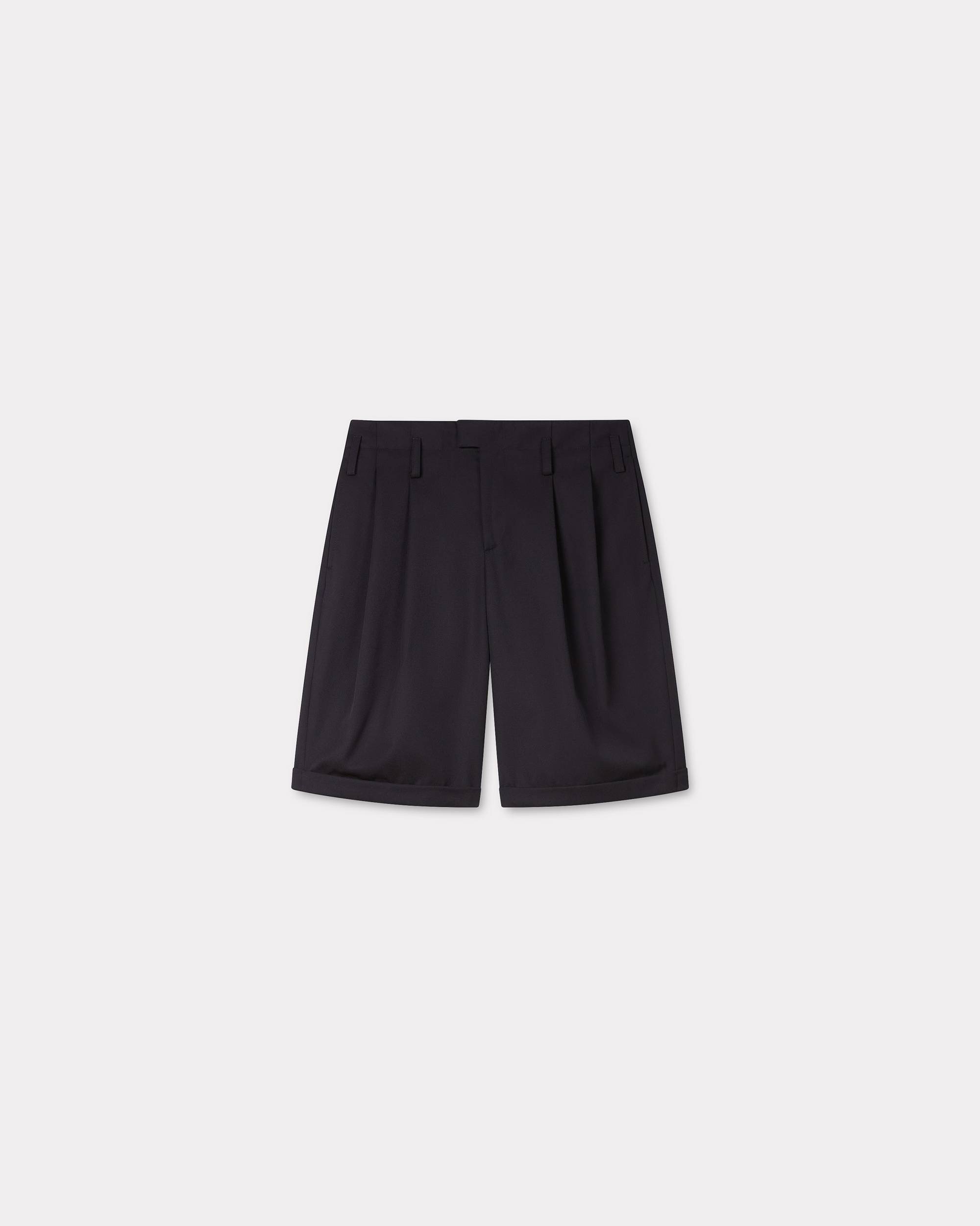 School boy shorts. KENZO Paris label on back pocket. Zipped fly. Turn up. Two side pocket. Two jet back pocket. Product Reference: FE65SH2389RD.99 SIZE & FIT Relax fit. Leg length at 60 cm. The model is 185 cm tall and is wearing size M. COMPOSITION & CARE Made in Romania 55% polyester, 45% wool Do not bleach Mild professional dry-cleaning in: hydrocarbons Iron at low temperature Line drying in the shade Do not tumble dry Do not wash Do not wet-clean