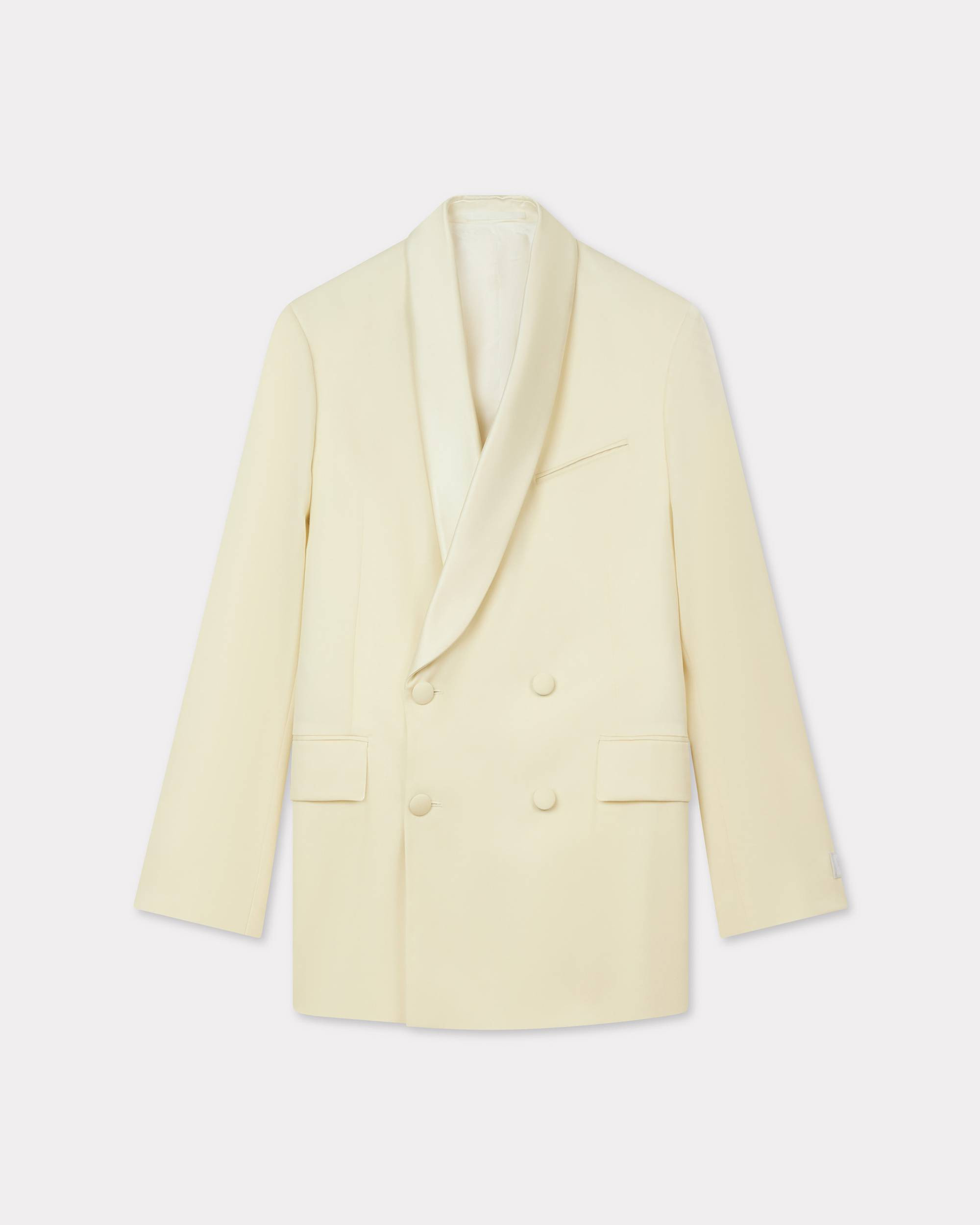 Shawl collar blazer. Virgin wool and satin lining. 2 jetted pockets and 1 double jetted pocket at chest. One double jetted pocket inside. Double-breasted closure. Tonal 'KENZO Paris' label at sleeve. Product Reference: FF62VE2769TF.03 SIZE & FIT The model is 175 cm tall and is wearing size S. COMPOSITION & CARE Made in Italy 100% virgin wool Do not bleach Mild professional dry-cleaning in: hydrocarbons Do not wash Do not wet-clean