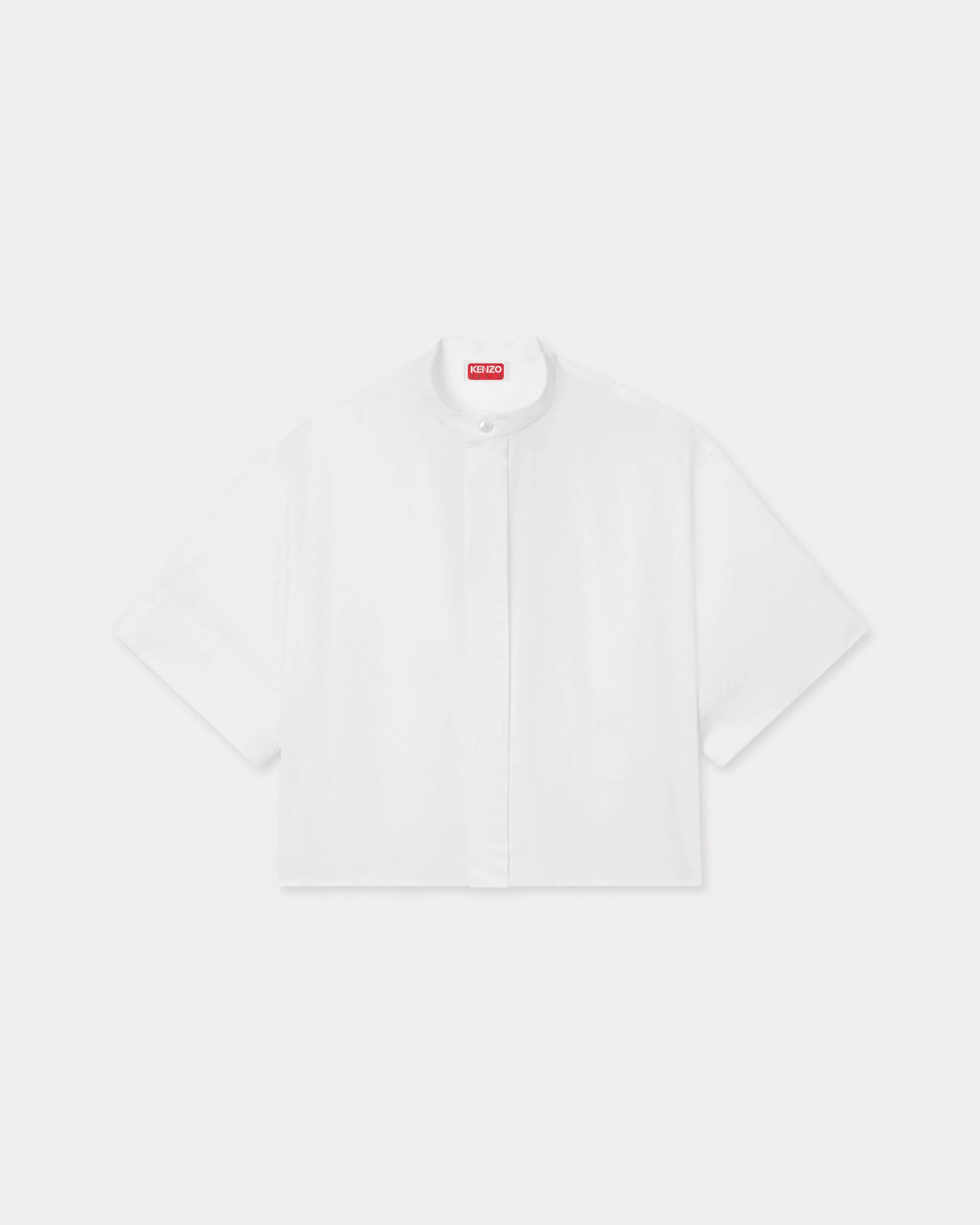 Short sleeves shirt. Poplin cotton. Officer collar. Hidden single-breasted at front. Large double cuffs to elevate the shape. Tonal archive signature embroidered at front and mother-of-pearl engraved buttons. Product Reference: FG52CH2819LF.01 SIZE & FIT The model is 175 cm tall and is wearing size 36. Boxy boyish fit. Back length 51 cm. This item is designed to be worn loose. Take your usual size. COMPOSITION & CARE Made in Tunisia 100% cotton Do not bleach Mild professional dry-cleaning in: hydrocarbons Iron at low temperature Line drying in the shade Do not tumble dry 30°C very mild fine wash Very mild professional wet-cleaning