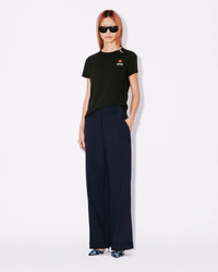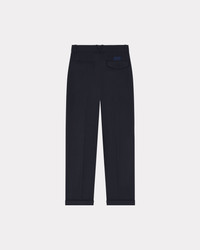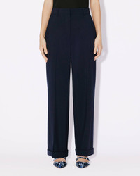These tailored trousers embody Nigo's idea of feminine elegance. Their hidden fly fastening and front pleats offer understated style. Simply pair them with the matching kimono blazer or other tops from the collection. Tailored virgin wool trousers. 'KENZO Paris' label at the back. Flower-shaped button at the back. Two slanted side pockets. Flap pockets at the back. Front pleats. Turn-ups. Belt loops with crossover at the back. Hidden zip and button fly fastening. Product Reference: FE52PA0869GE.77 SIZE & FIT Leg length: 102 cm. The model is 175 cm tall and is wearing size S. COMPOSITION & CARE Made in Romania 100% virgin wool Do not bleach Mild professional dry-cleaning in: hydrocarbons Iron at low temperature Line drying in the shade Do not tumble dry Do not wash Do not wet-clean