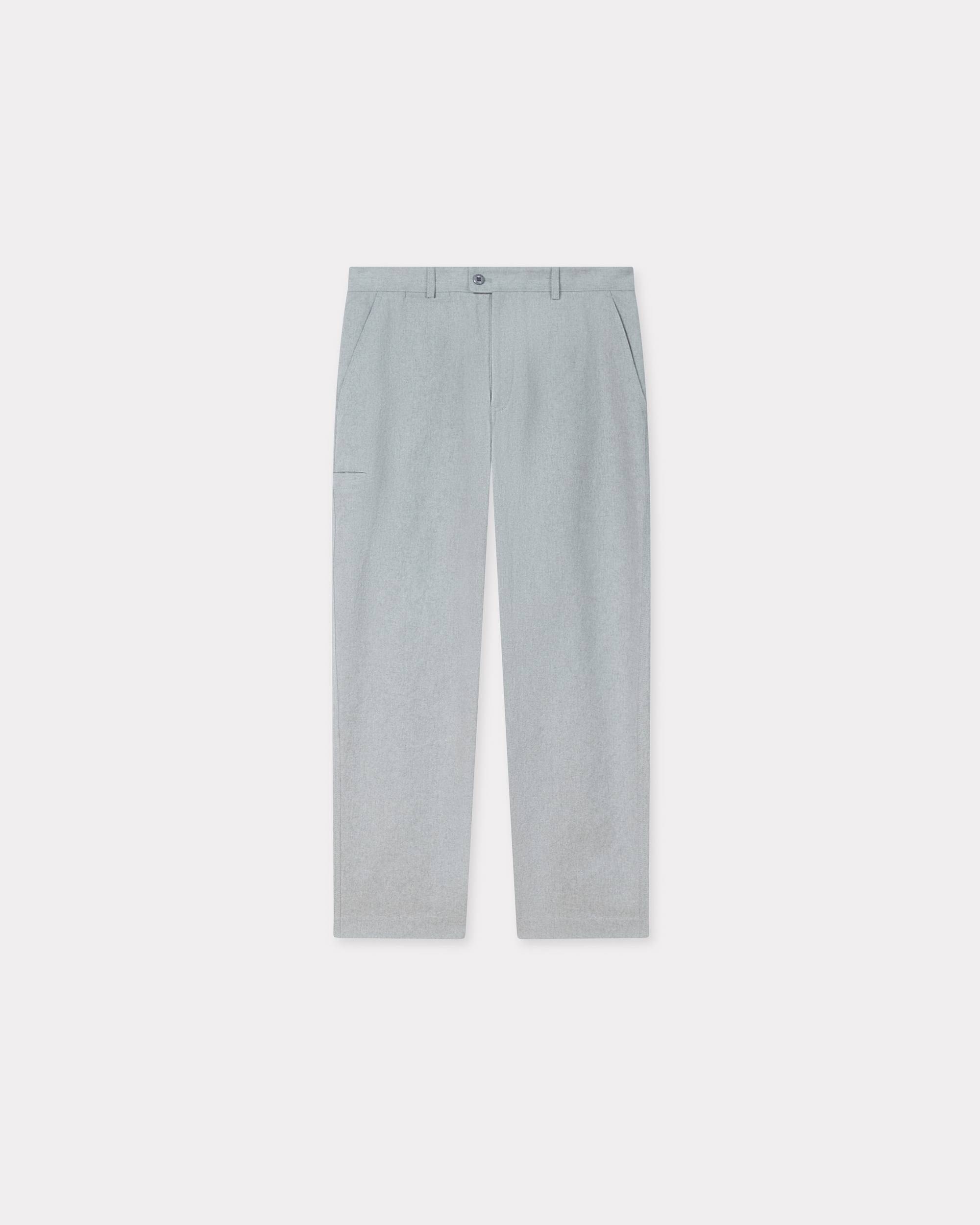 Tapered workwear pants. Polyester cotton. Unlined. Two side pockets. One phone pocket. One coin pocket. 'KENZO Paris' tonal label placed on the back pocket. Product Reference: FF65PA3659GV.93 SIZE & FIT The model is 185 cm tall and is wearing size M. Leg length at 104 cm. Loose fit. COMPOSITION & CARE Made in Romania 65% cotton, 25% polyester, 10% other fibers Mild professional dry-cleaning in: hydrocarbons Line drying in the shade Very mild professional wet-cleaning