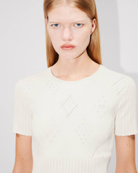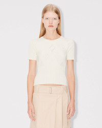 Short sleeves top stretch lace. Viscose mix Stretch Lace. 'KP' branding in open stitch technique included in the knit. Product Reference: FF52PU4983CW.02 SIZE & FIT The model is 175 cm tall and is wearing size S. COMPOSITION & CARE Made in China 86% viscose, 14% polyester Do not bleach Mild professional dry-cleaning in: hydrocarbons Iron at low temperature Flat drying in the shade Do not tumble dry 30°C very mild fine wash Mild professional wet-cleaning