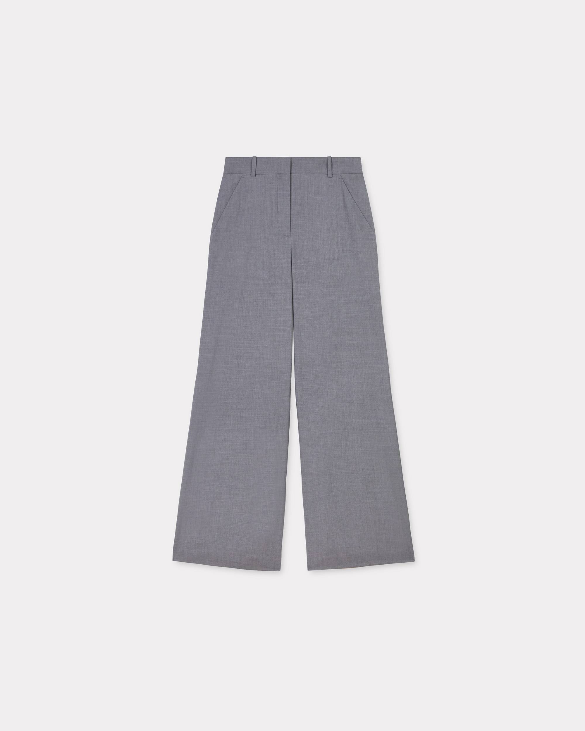 Virgin wool tailored pants. Side pockets at front. Jetted pockets with flap at back. Basic belt loop. Cuffs and hidden zip & button closure. Boke flower button. KENZO Paris label at back. Product Reference: FE62PA0949RB.97 SIZE & FIT The model is 175 cm tall and wears a size S. Leg length at 102 cm. Regular waist. COMPOSITION & CARE Made in Romania 76% virgin wool, 23% cotton, 1% elastane Do not bleach Mild professional dry-cleaning in: hydrocarbons Iron at low temperature Line drying in the shade Do not tumble dry Do not wash Do not wet-clean