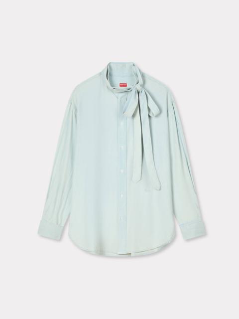 Oversized bow shirt in stone bleach chambray