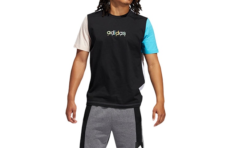 adidas Color Block Printing Logo Basketball Short Sleeve Black GP4021