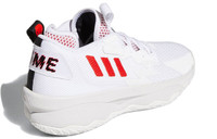 PRODUCT INFORMATION MODEL NO: GY0384 RELEASE DATE: 2022-01-14 SERIES: Dame Lillard NICKNAME: Dame Time STYLE: Practical SEASON: All Season UPPER MATERIAL: Synthetic Leather/Fabric SOLE MATERIAL: Rubber Sole TOE TYPE: Round Toe HEEL TYPE: Flat heel COLOR WAY: White/Black/Red DESCRIPTION Introducing the Adidas Dame 8 Dame Time basketball shoe. This shoe is a reference to Damian Lillard's habit of staging dramatic fourth quarter comebacks. It features a breathable white mesh upper with red three-stripes on the lateral side and contrasting black paneling on the medial side. ‘Dame Time’ is inscribed across the heel of the left and right shoe, while a webbing pull tab displays ‘4th QTR K.O.’ The sneaker sits atop a dual-density Bounce Pro midsole, which provides a blend of energy return and support. Underfoot, the rubber outsole features a wavy traction pattern for optimal grip on the hardwood.