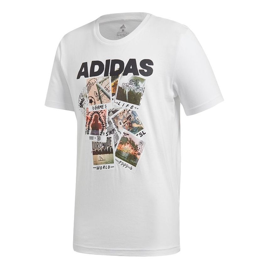 adidas Doodle Photos Photo Printing Sports Round Neck Short Sleeve White FN1715