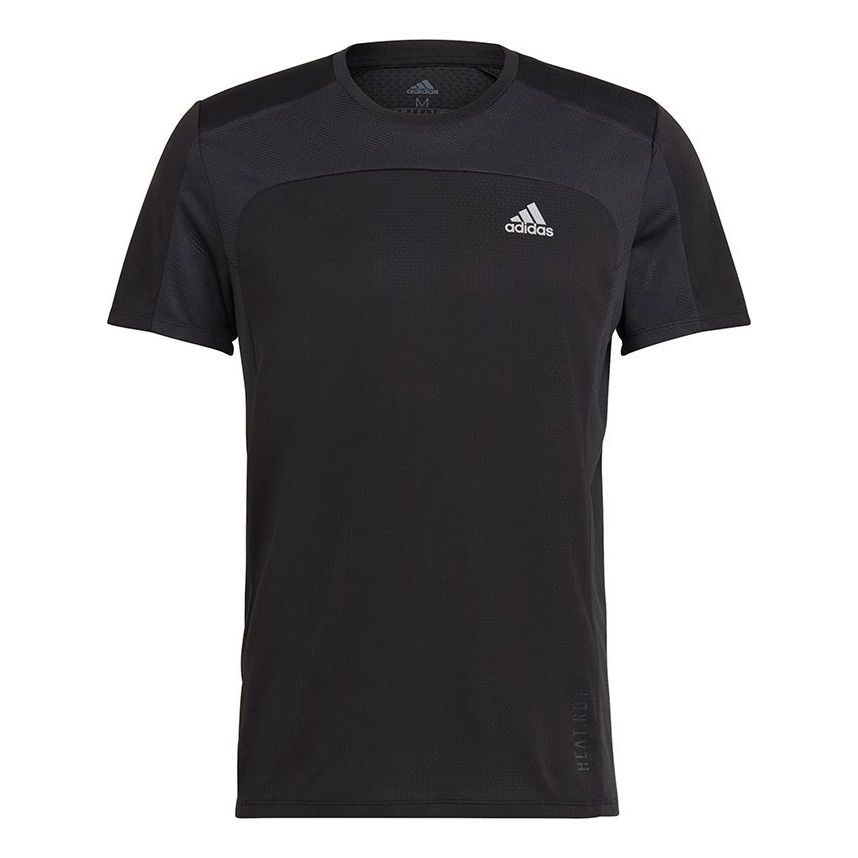 adidas Heat Rdy Tee Colorblock Reflective Logo Running Sports Short Sleeve Black GK4301