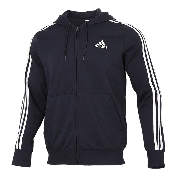 adidas M 3S FT FZ HD Knit Hooded Jacket Blue GK9033