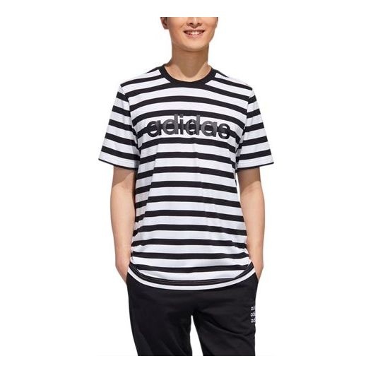 adidas neo Stripe Short Sleeve Sports Pullover Black GJ8917