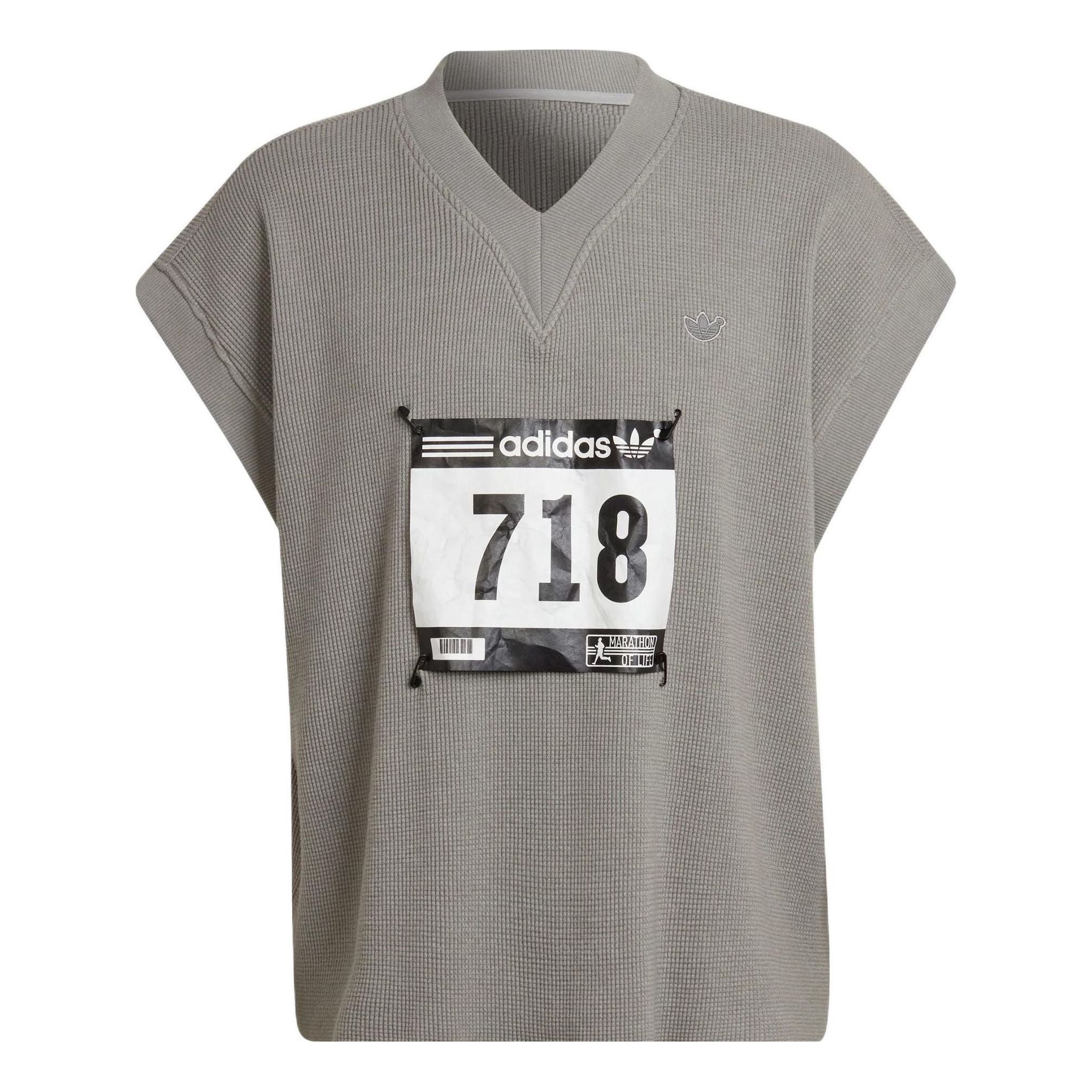 adidas originals Blue Version Detachable Solid Color Athleisure Casual Sports V neck Vest Gray HC382