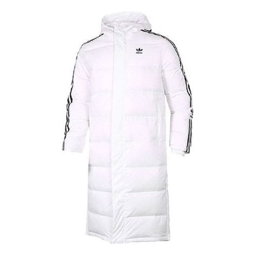 adidas originals Long Down Side Logo Printing mid-length Sports Down Jacket White HI4659
