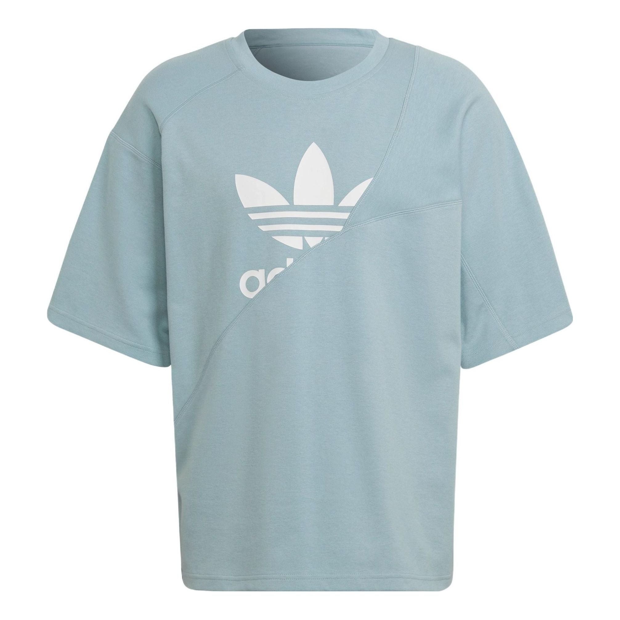 adidas originals Sports Large Logo Solid Color Splicing Short Sleeve Gray Green HC4509