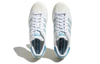 PRODUCT INFORMATION Model No: GX9876 Closure: Lacing Release Date: 2023-07-15 Upper Material: Leather Thickness: Regular sole Colorway: Cloud White / Off White / Light Blue Toe Type: Round Toe Upper: Low Top Sole Material: Rubber Sole Color: white Series: Superstar Nickname: Off White Light Blue Occasion: lifestyle