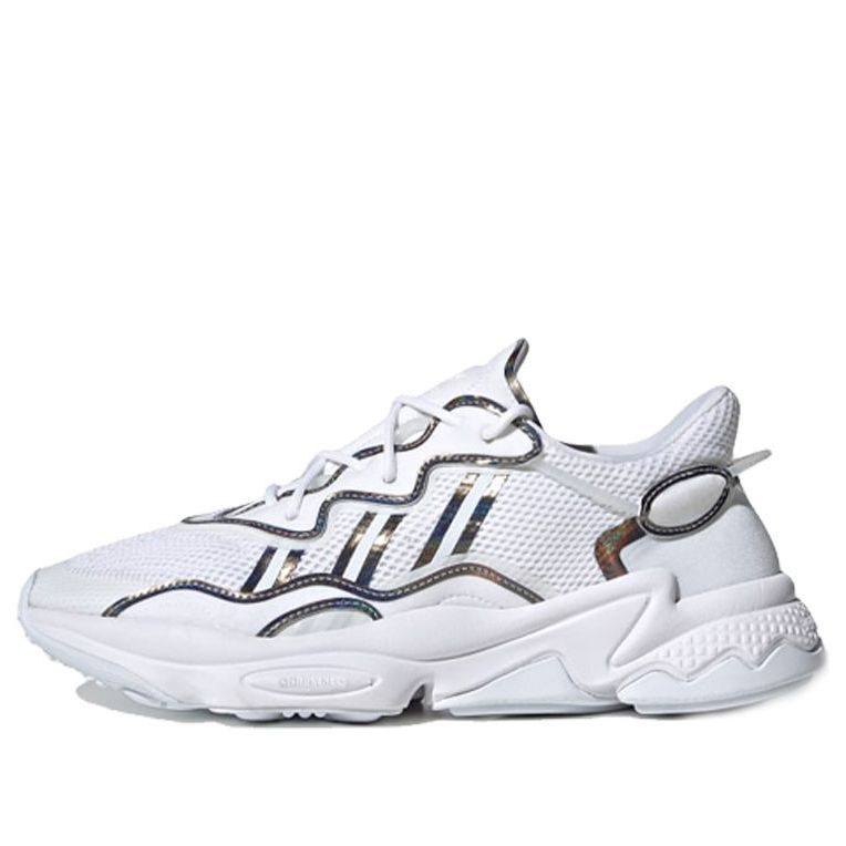 PRODUCT INFORMATION MODEL NO: FV9654 RELEASE DATE: 2020-07-30 SERIES: Ozweego NICKNAME: White Iridescent STYLE: Sports/Retro UPPER MATERIAL: Fabric CLOSURE: Lacing SOLE MATERIAL: Rubber Sole TOE TYPE: Round Toe HEEL TYPE: Thick bottom COLOR WAY: White