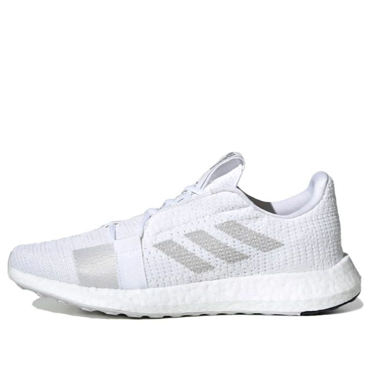 PRODUCT INFORMATION Model No: G26940 Closure: Lacing Release Date: 2019-07-02 Upper Material: Fabric/Synthetic Leather Style: Sports Colorway: White/Grey Heel Type: Flat heel Toe Type: Round Toe Sole Material: Rubber Sole Functionality: Slip-resistant/Lightweight Season: All Season Color: WHITE Series: SenseBoost Go Nickname: Footwear White Occasion: running