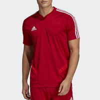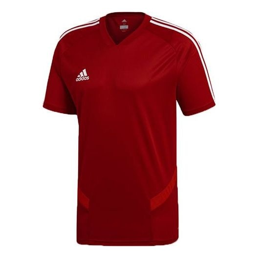 adidas Solid Color Logo Printing V neck Short Sleeve Red D95944