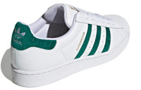 PRODUCT INFORMATION MODEL NO: H00190 RELEASE DATE: 2022-01-28 SERIES: Superstar NICKNAME: White Gold Metallic STYLE: Sports SEASON: All Season UPPER MATERIAL: Leather CLOSURE: Lacing SOLE MATERIAL: Rubber Sole TOE TYPE: Round Toe HEEL TYPE: Flat heel COLOR WAY: White/Green