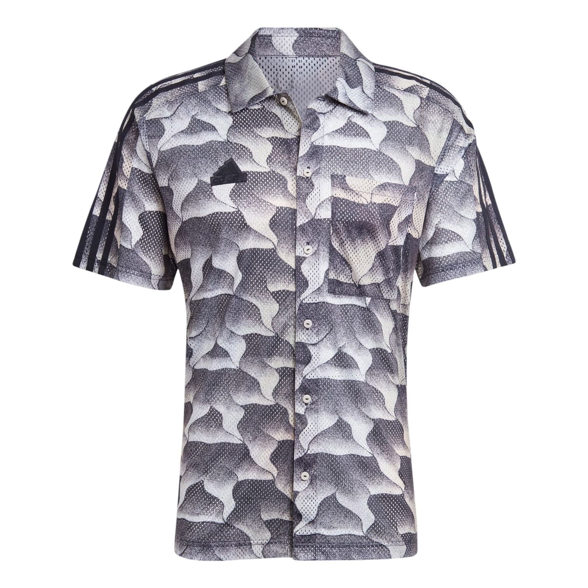 adidas Tiro Allover Print Mesh Resort Shirt Asia Sizing 'Black Grey' IS1532