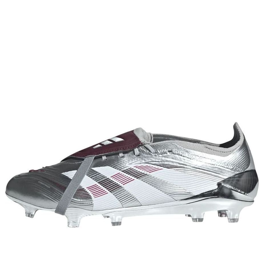 PRODUCT INFORMATION Model No: IH0894 Closure: Lacing Release Date: 2025-04-15 Upper Material: Synthetic Leather Thickness: Regular Sole Colorway: Silver Metallic/Legend Burgundy/Maroon Toe Type: Round Toe Upper: Low Top Sole Material: Rubber Sole Color: silver Series: Predator Sub Series: Predator Elite Nickname: Chrome Dream Occasion: soccer