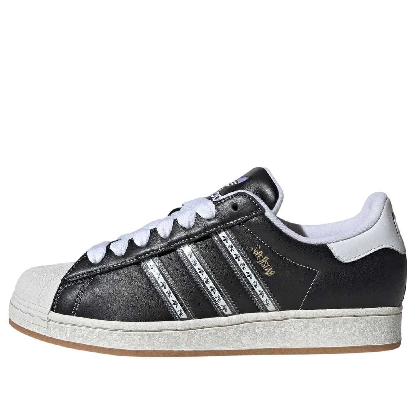 PRODUCT INFORMATION Model No: IH1313 Closure: Lacing Release Date: 2024-10-30 Upper Material: Leather Thickness: Regular Sole Colorway: Black/Off White/Gum Toe Type: Round Toe Upper: Low Top Sole Material: Rubber Sole Color: black Series: Superstar Nickname: Black Whtie Occasion: lifestyle Relive the 90s with the Korn x adidas Superstar collection, inspired by Korn's iconic debut album. This collaboration features a bold black and white leather Superstar with co-branded overlays, graffiti-style branding, and guitar-pick hangtags. Complete your Korn-inspired look with matching apparel, including T-shirts, hoodies, and plaid garments, plus a co-branded Adilette slide.