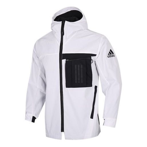adidas Zipper Cargo Woven Fleece Lined Jacket White FM9394