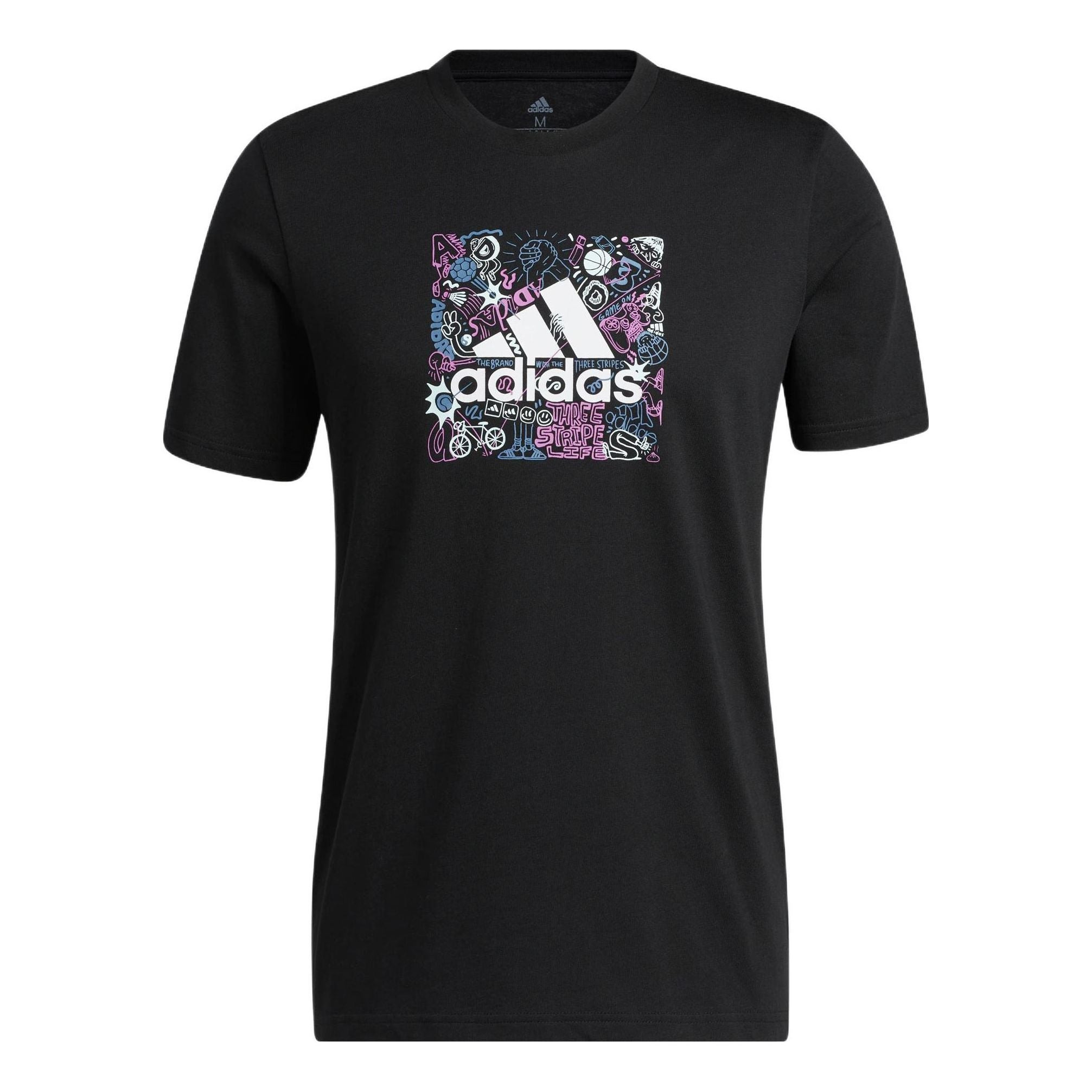 Men's adidas Cartoon Graffiti Alphabet Logo Pattern Printing Round Neck Short Sleeve Black T-Shirt I