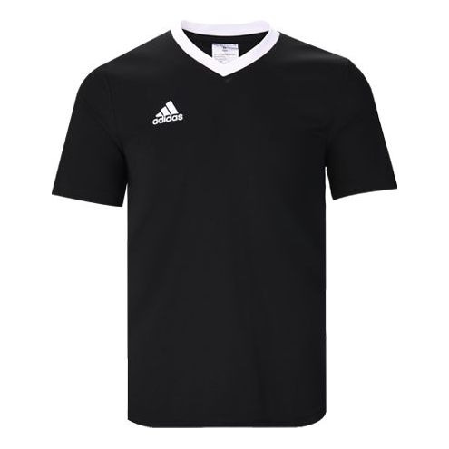 Men's adidas Contrasting Colors Collar Logo Casual Sports Short Sleeve Black T-Shirt HE1573