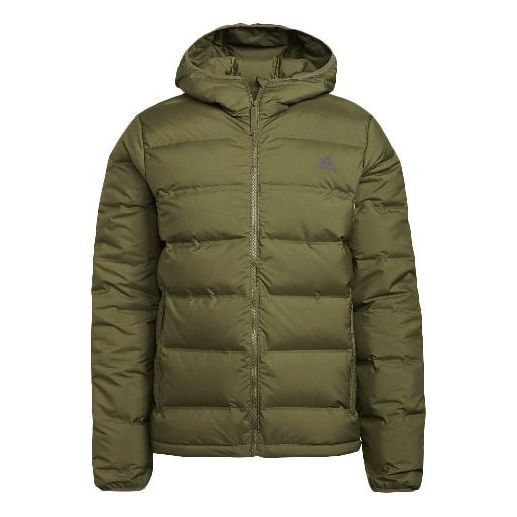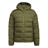 Men's adidas Logo Long Sleeves Hooded Stay Warm With Down Feather Green Jacket GU3954