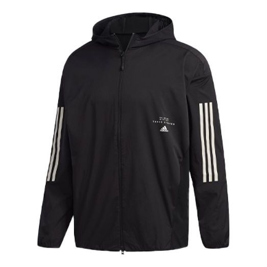 Men's adidas Logo Stripe Printing Hooded Jacket Black FM5325
