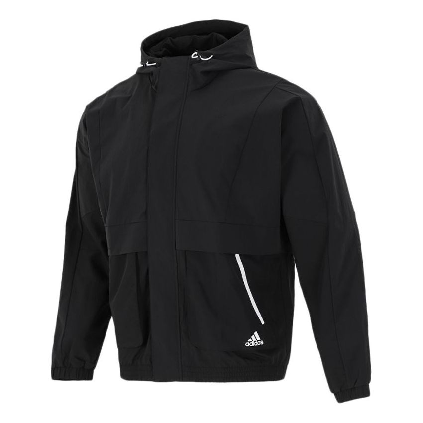Men's adidas Loose Logo Casual Woven Windproof Hooded Jacket Autumn Black H40211