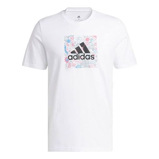 Men's adidas Minimalistic Alphabet Large Logo Printing Casual Round Neck Short Sleeve White T-Shirt