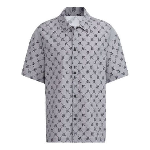 Men's adidas neo Pattern Full Print Athleisure Casual Sports Short Sleeve Shirt Gray IB5858