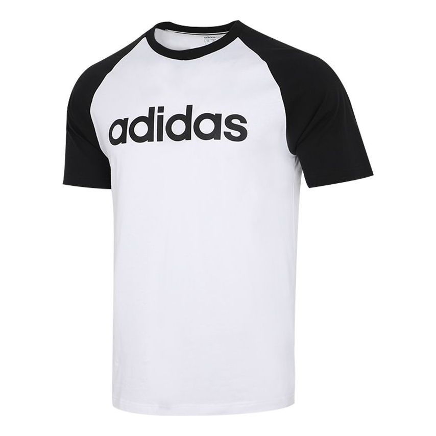 adidas neo M Esntl Rgln T Logo Printing Colorblock Sports Short Sleeve White GJ8945