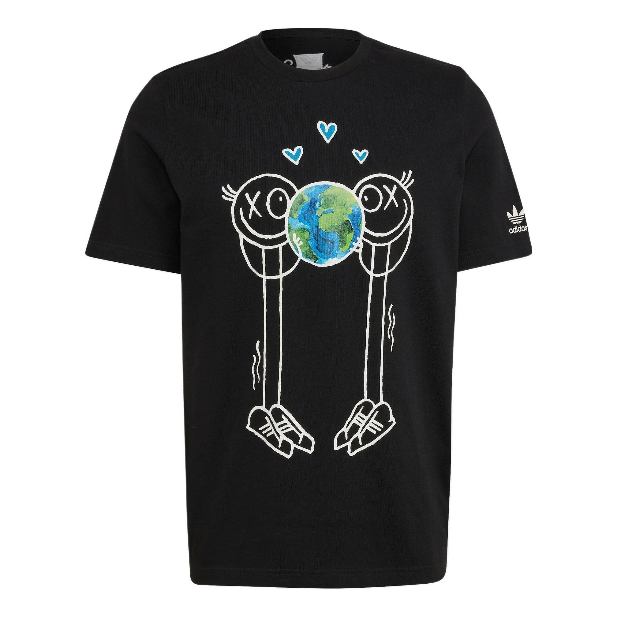 Men's adidas originals Cartoon Pattern Printing Logo Round Neck Short Sleeve Black T-Shirt HR7113