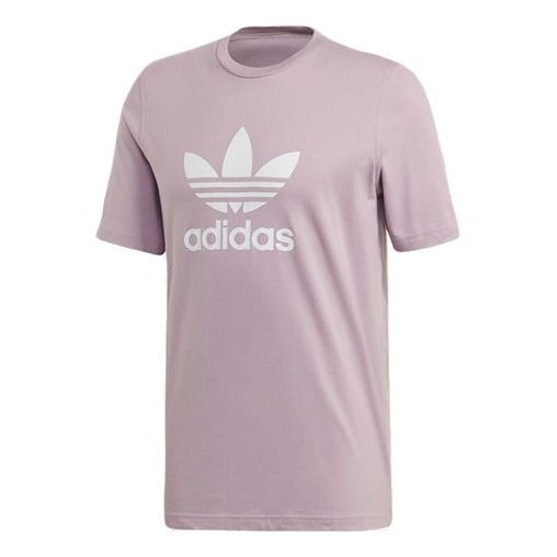Men's adidas originals Chest Logo Sports Short Sleeve Pink Purple Gray T-Shirt ED4714