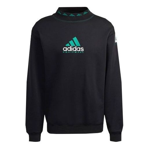 Men's adidas originals Eqt Logo Embroidered Sports Round Neck Pullover Black HG8096