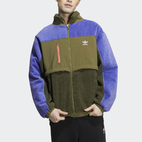 Men's adidas originals High Collar Colorblock Splicing Zipper logo Sports Jacket Dark Olive Green HE