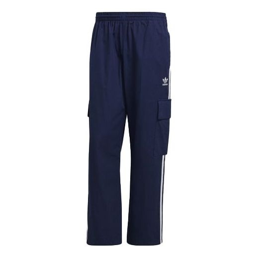 Men's adidas originals Logo Stripe Elastic Waistband Sports Cargo Autumn Blue Pants H09119